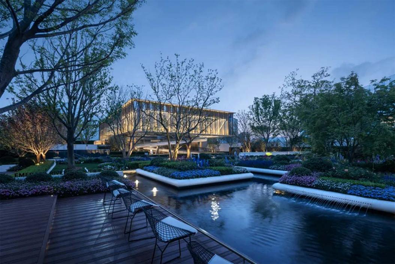 萬科翡翠濱江借鑒了波士頓“建筑-公園-建筑-公園”的設(shè)計(jì)理念,以水為紐帶,貫穿全軸線,打造了一座“翡翠項(xiàng)鏈?zhǔn)剿豆珗@”。歸家禮儀軸以中軸線,設(shè)置了不同的水表情,如涌泉、水瀑、跳泉等,營造出獨(dú)特的景觀效果。翡翠元素隨處可見,景墻內(nèi)嵌入通透的翠色琉璃,陽光下閃耀著翡翠的光澤。翡翠濱江以水為紐帶,營造了獨(dú)特的景觀效果,業(yè)主可盡情享受瞰江的壯麗景色。