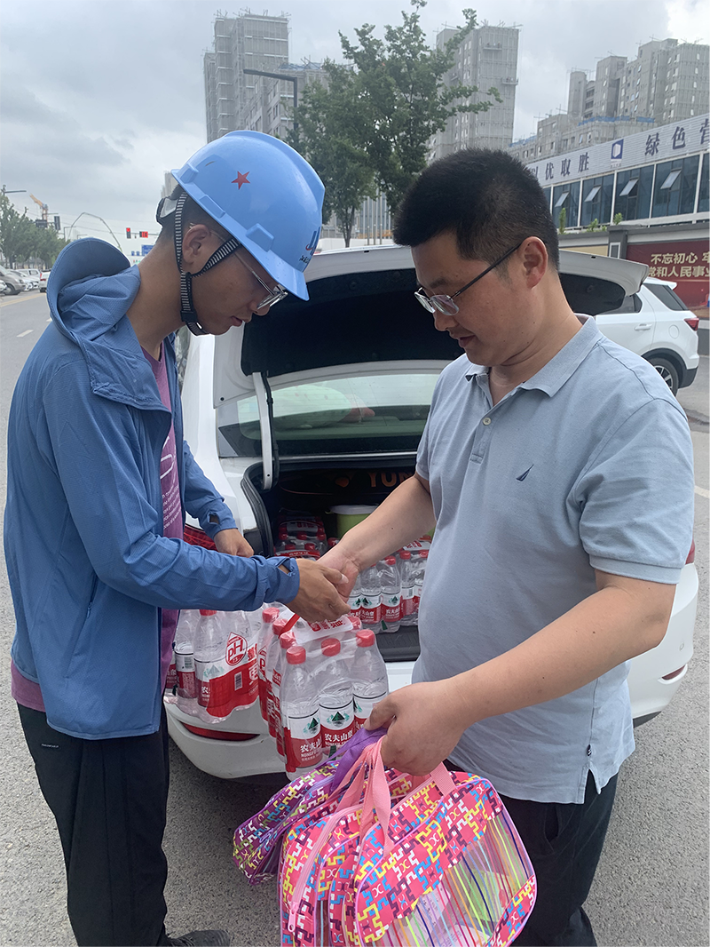 公司慰問團(tuán)隊(duì)分成若干小組,分別前往各在建項(xiàng)目工地。每到一項(xiàng)目,慰問組都將精心準(zhǔn)備的消暑降溫禮包送到員工手中,禮包內(nèi)包含了礦泉水、防暑物品等實(shí)用物品,以滿足員工在高溫天氣下的實(shí)際需求。
