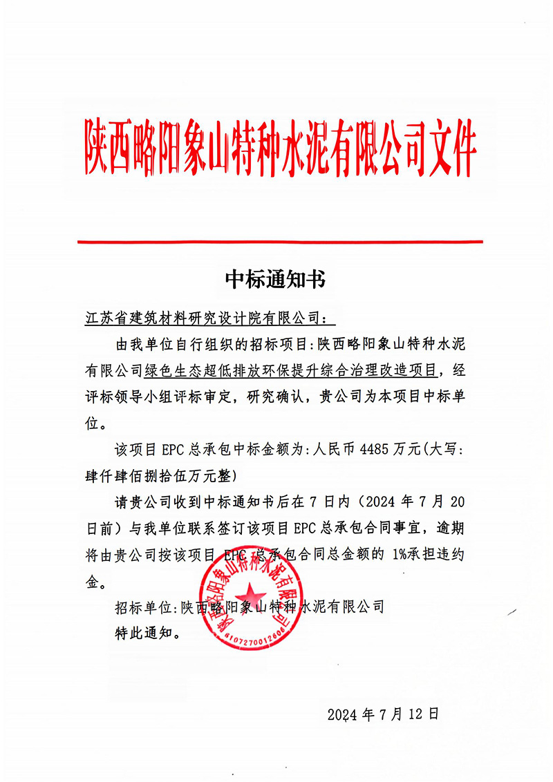 近日,我院中標(biāo)陜西略陽象山特種水泥有限公司綠色生態(tài)超低排放環(huán)保提升綜合治理改造EPC 工程總承包項(xiàng)目,中標(biāo)金額4485萬元。