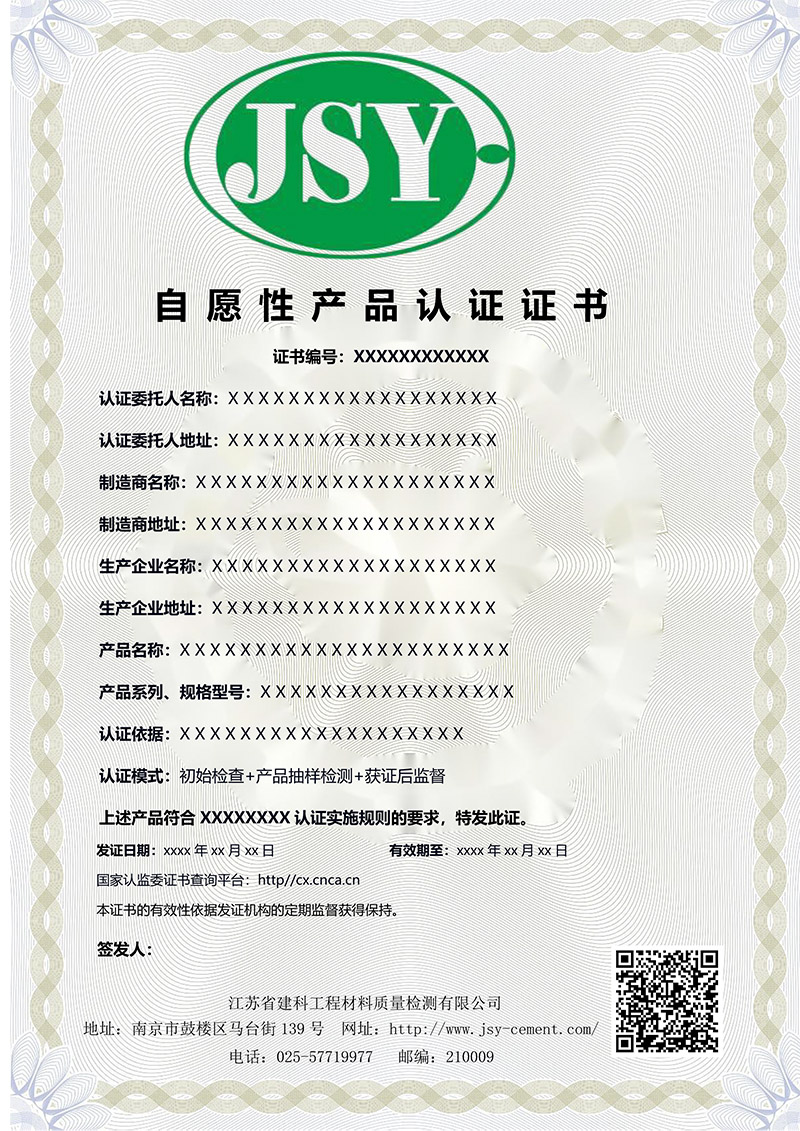 自愿性產(chǎn)品證書樣本